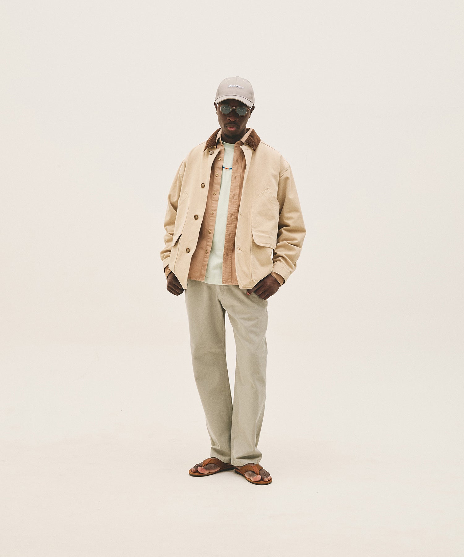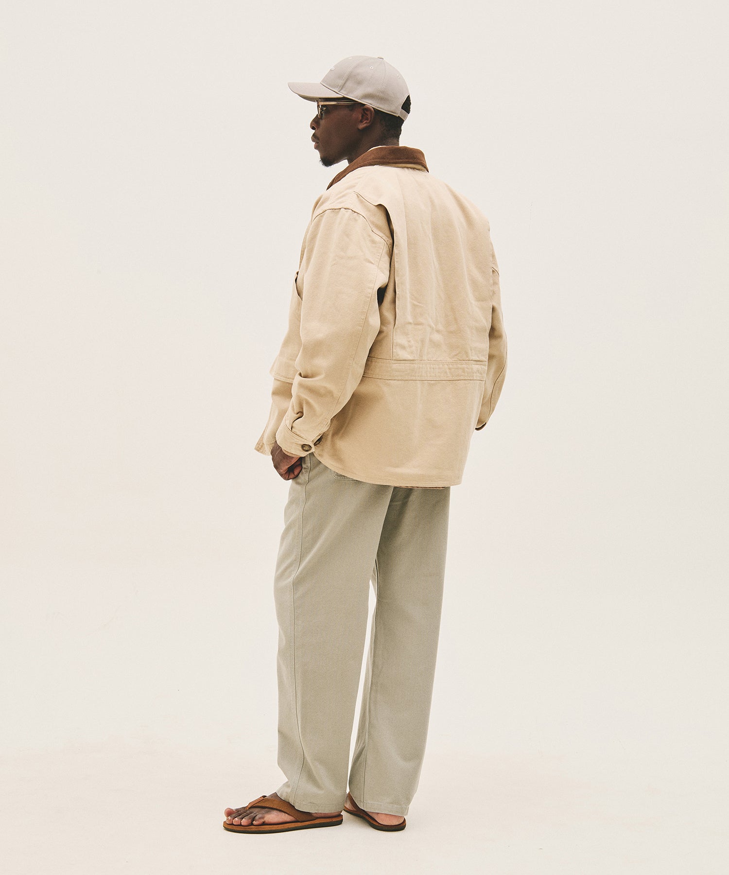 シーズンを通して着用できる気軽さと、背面のツールポケットなど、ワークウェアらしい実用的なデザインが特徴。