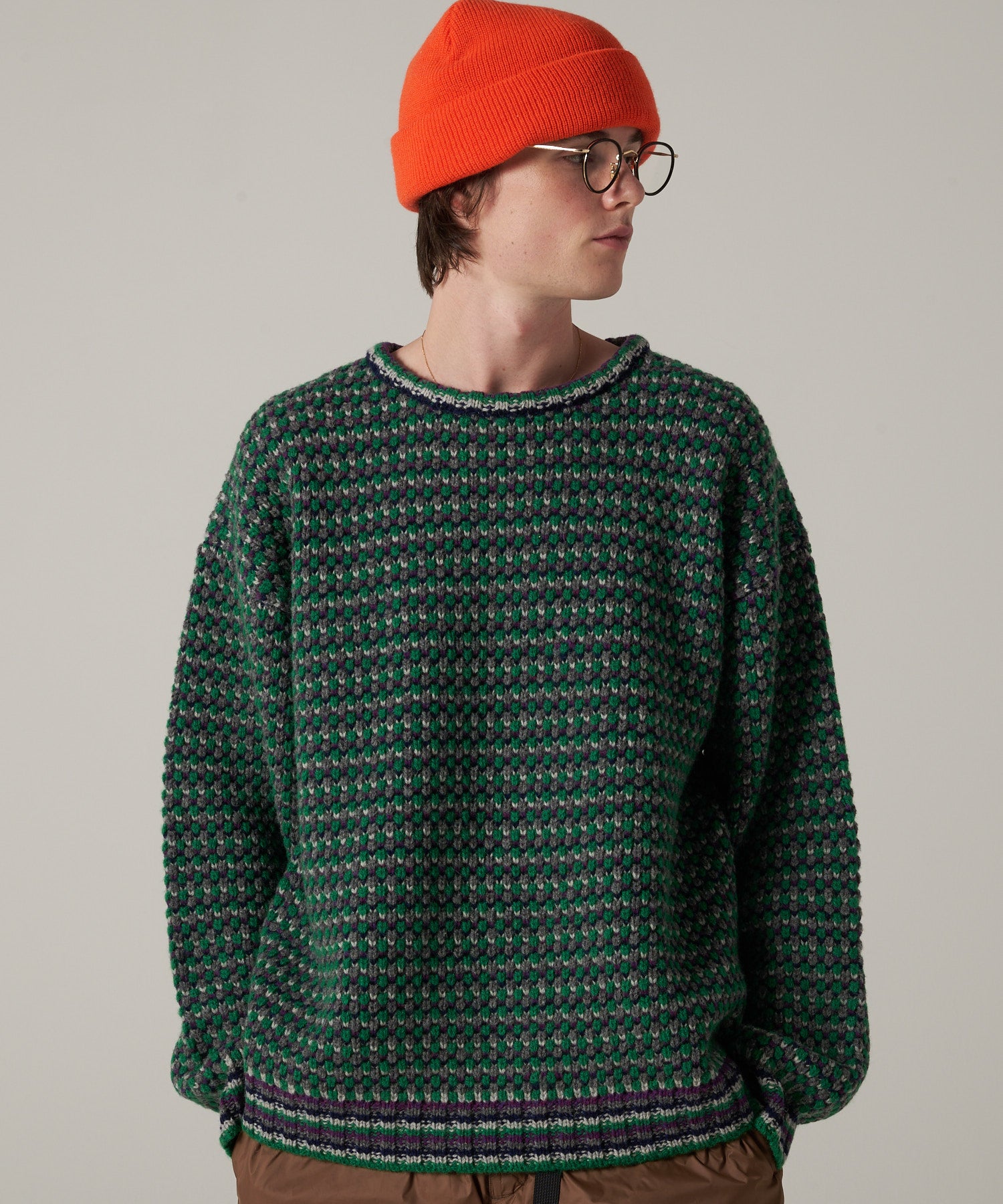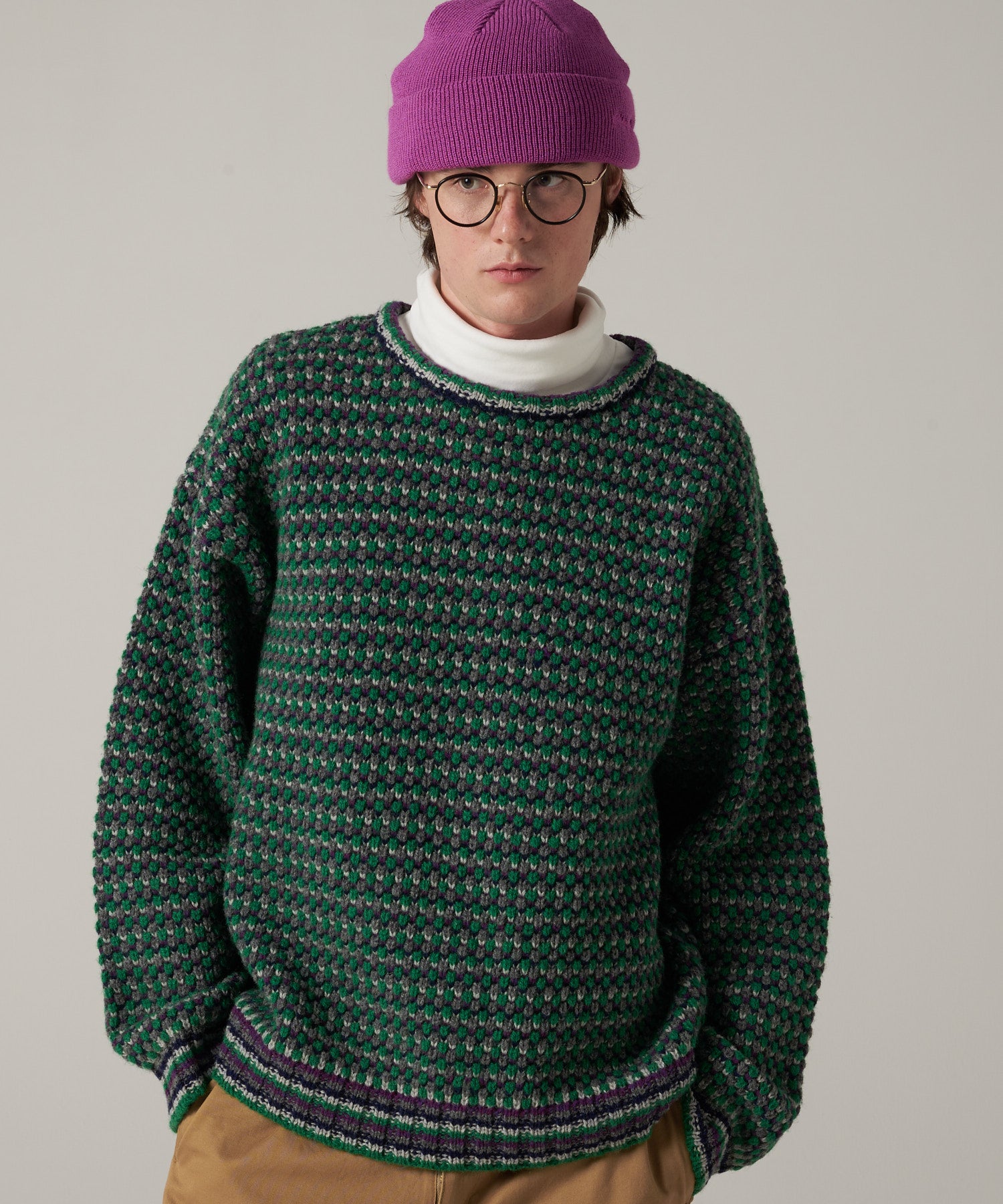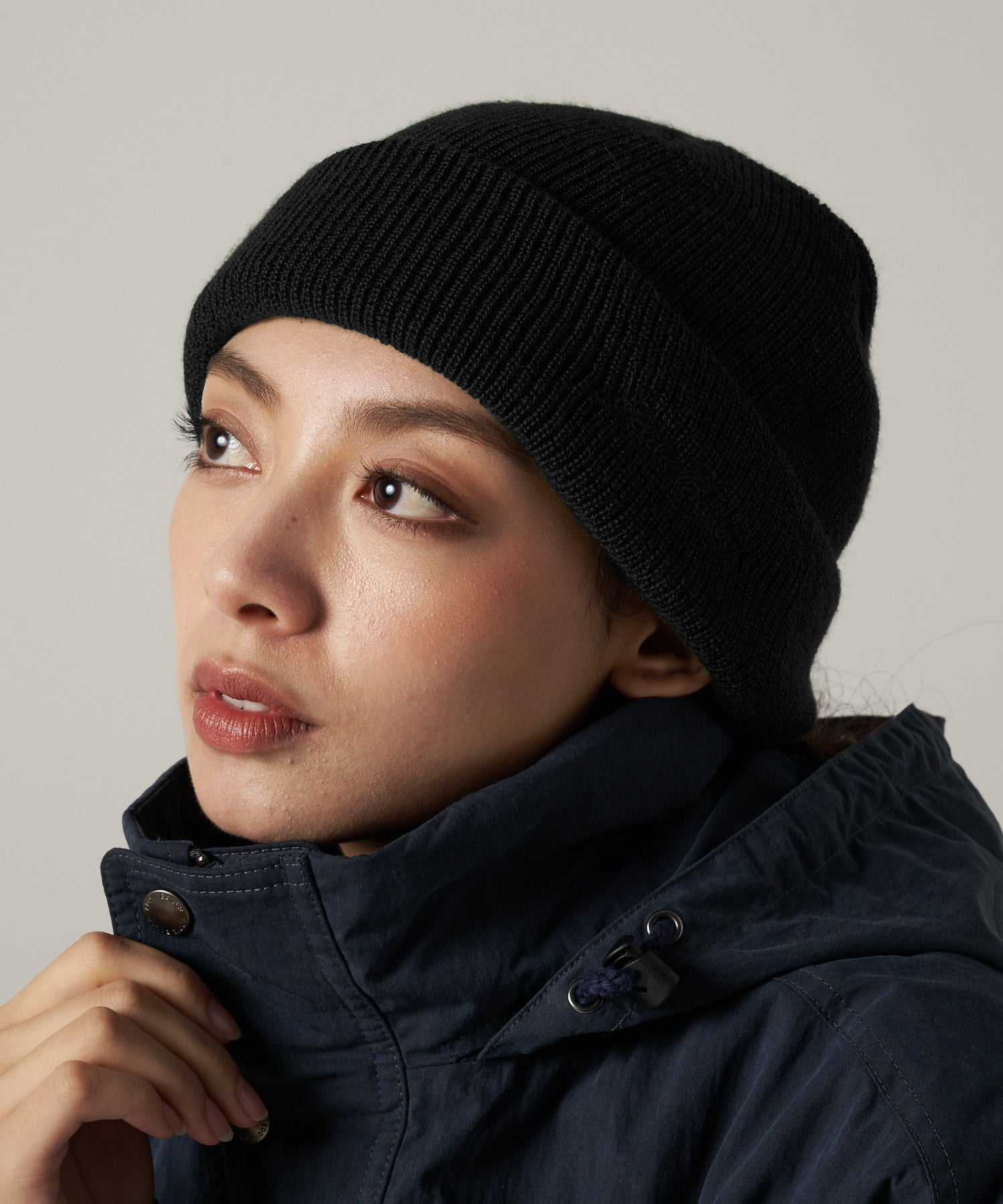 ウール混の糸を使用した高い保温力のあるアイテム。