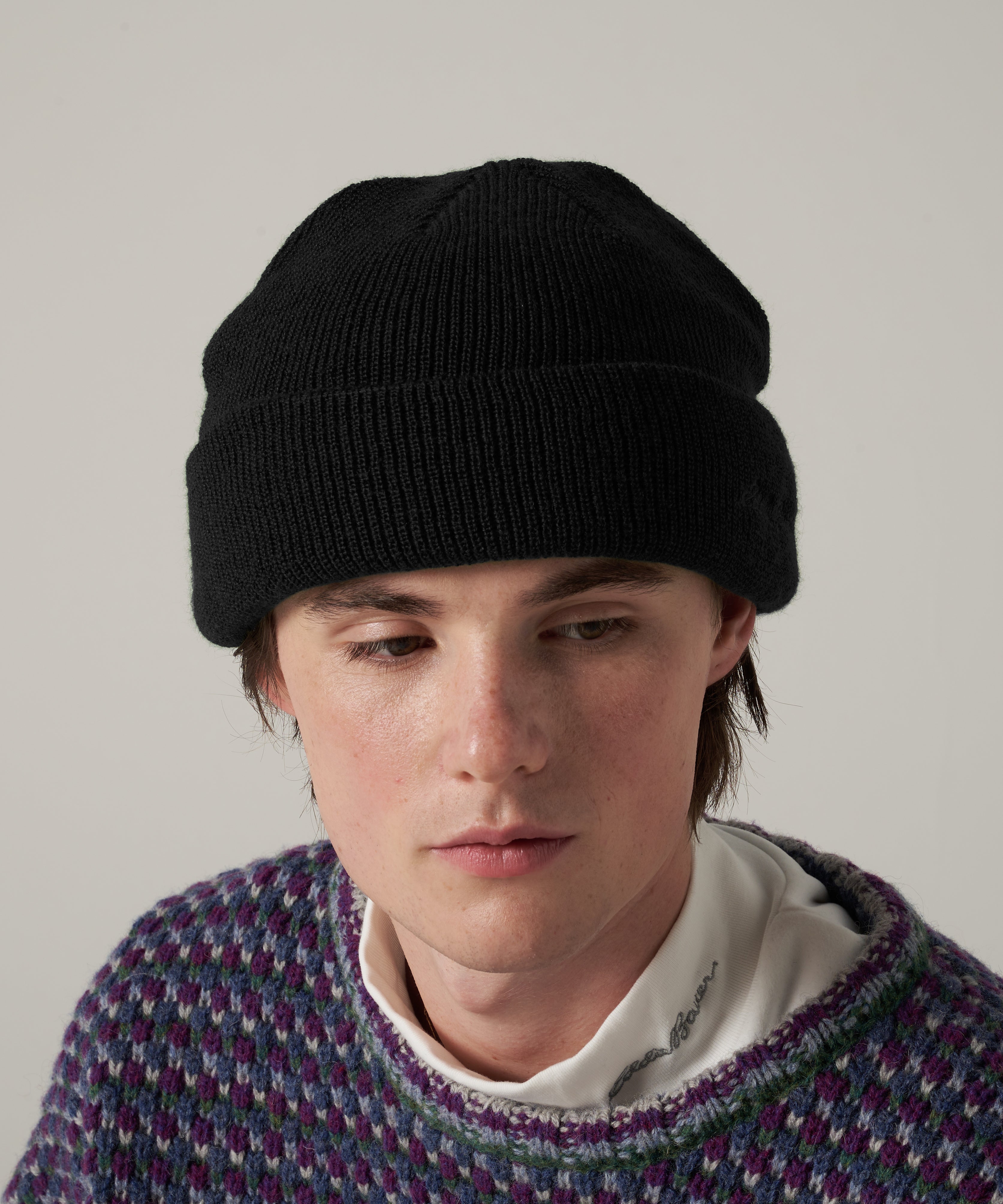 ブランドロゴ刺繡の入ったベーシックなニットキャップ。