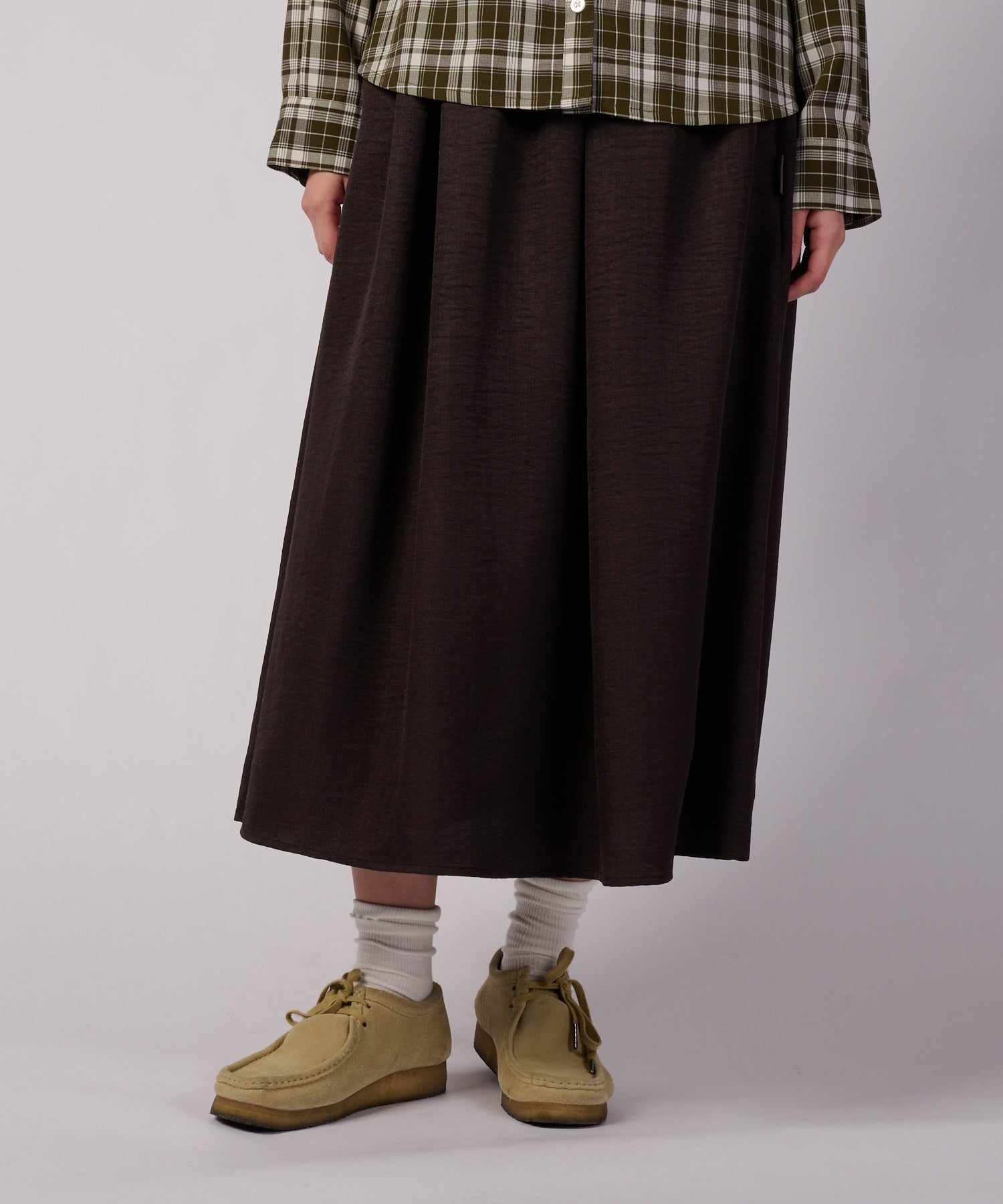 同素材のブラウス(E191227L)とのセットアップでのコーディネートもおすすめです。