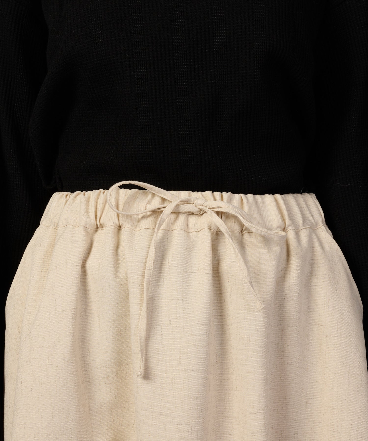肌離れがよいので動きやすく、ウエストはゴム仕様でストレスフリーに仕上がりました。