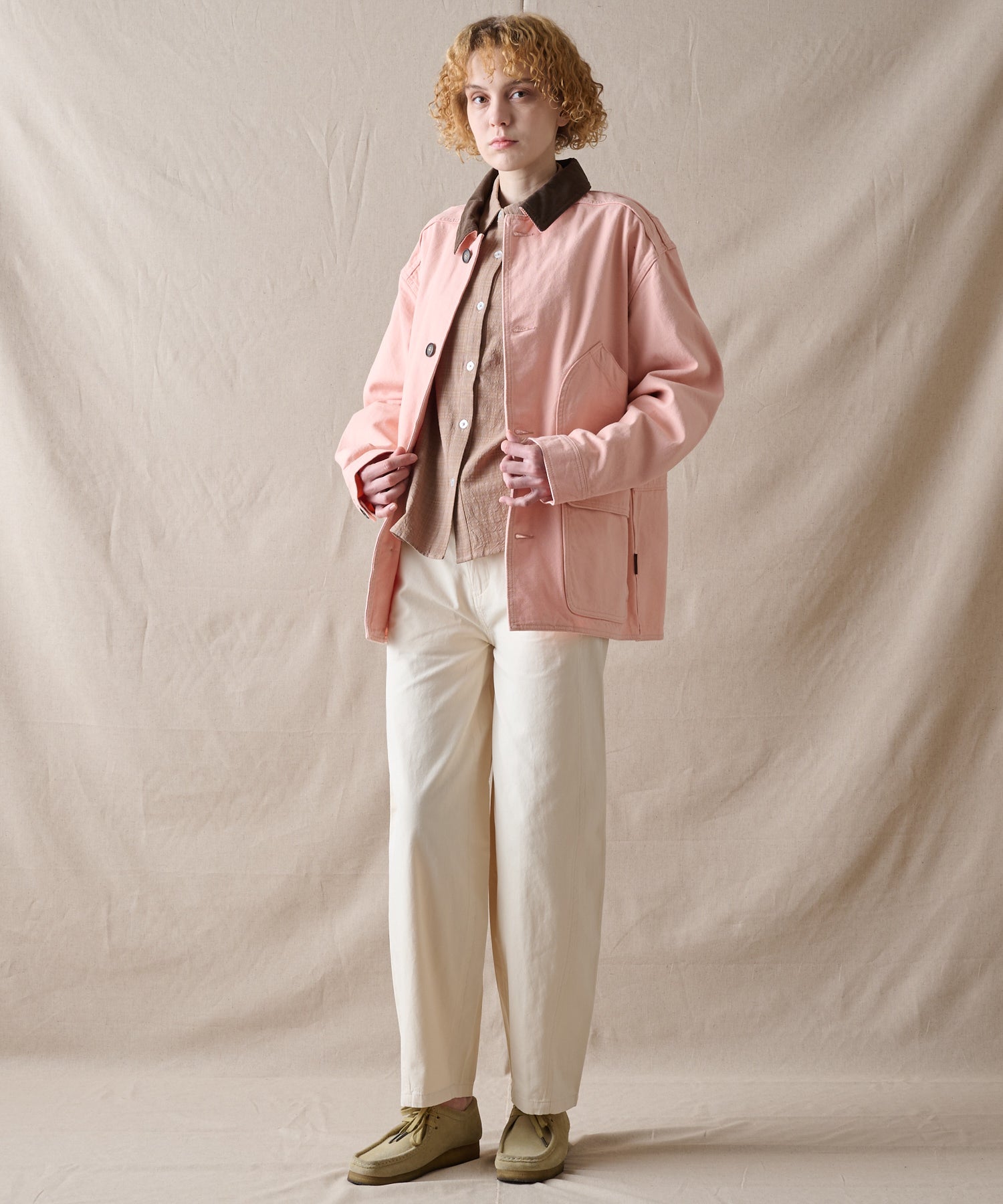 メッシュのような組織で軽やかなデニムとコットンダック素材を使用しており、春らしい印象に。