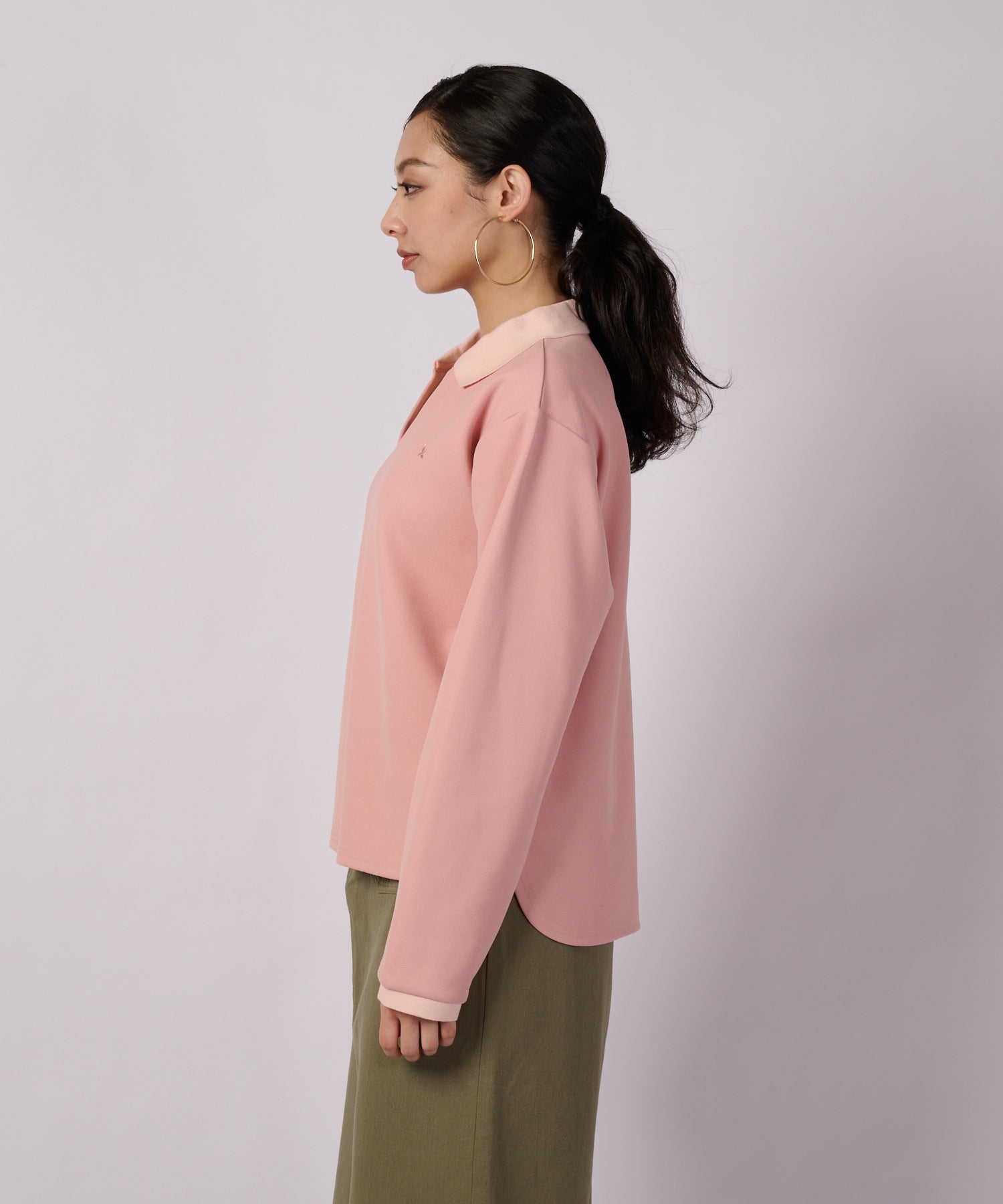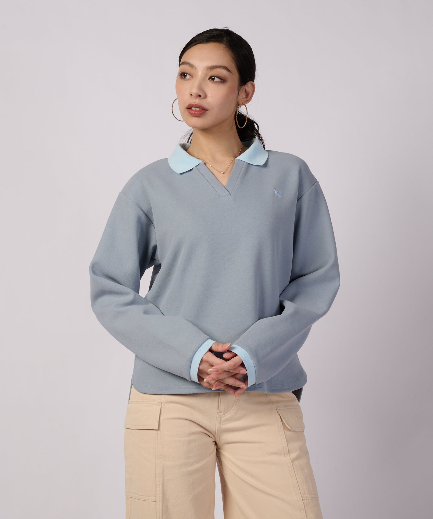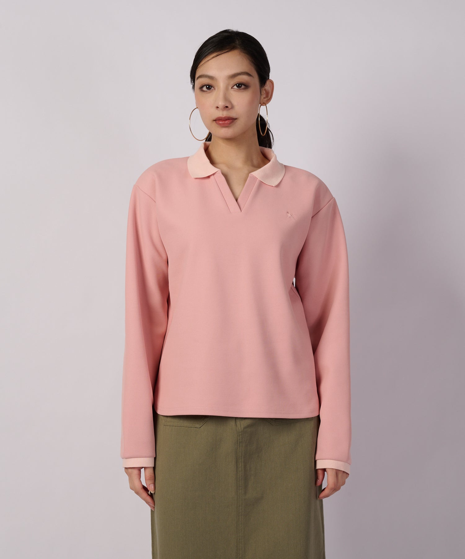 クリーンな印象の長袖ポロ。