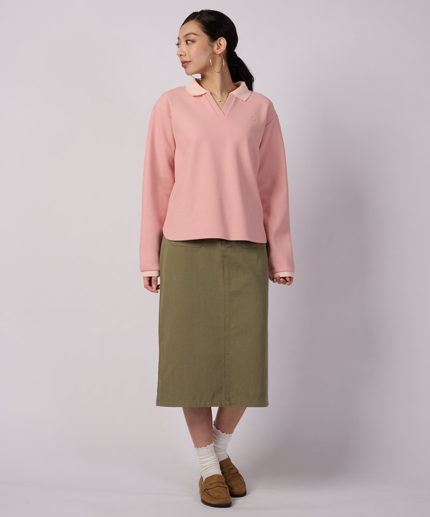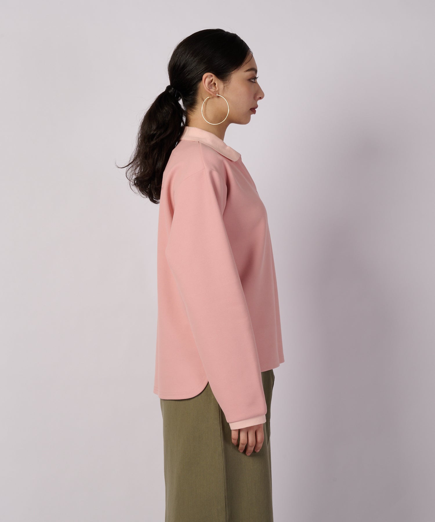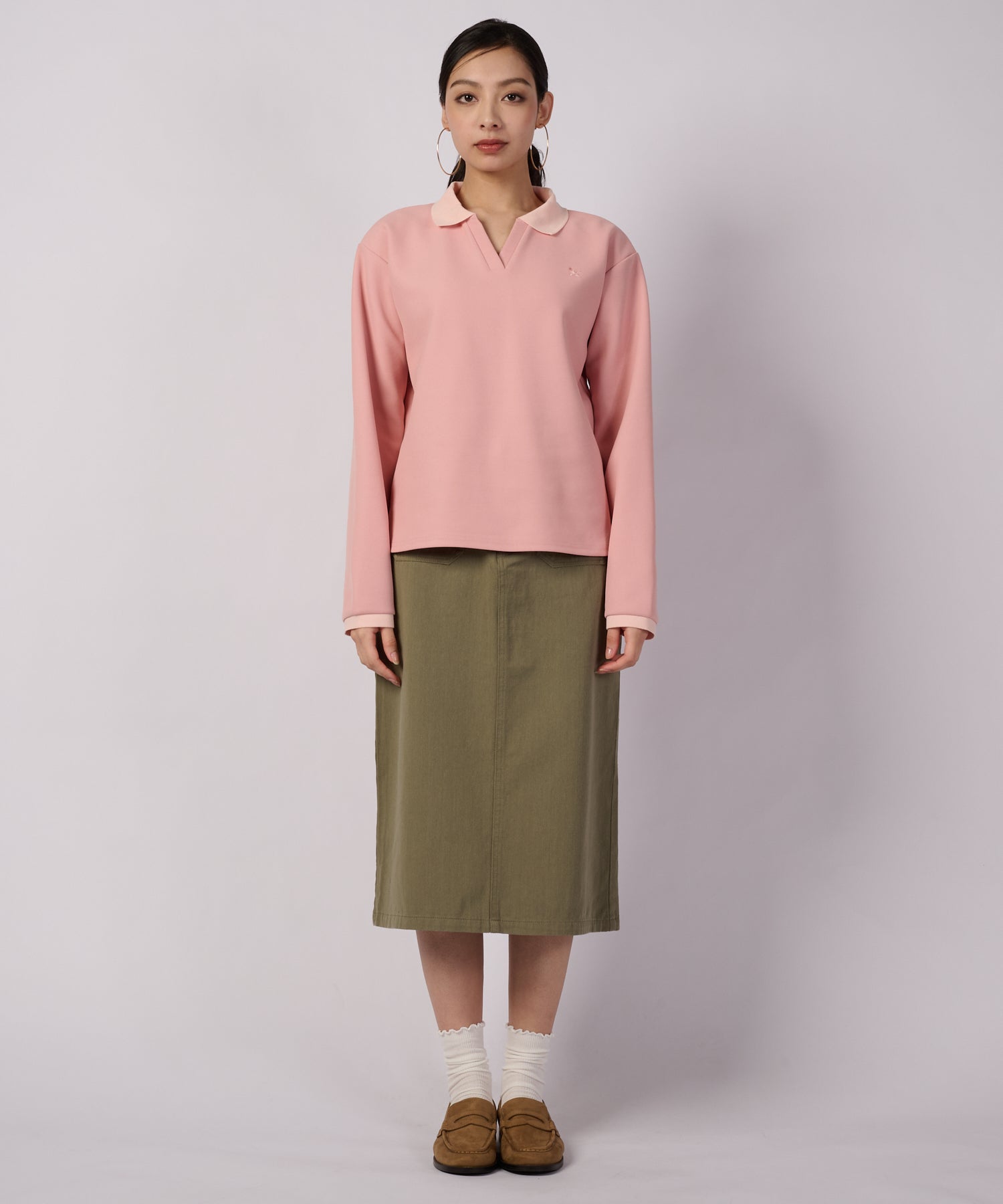クリーンな印象の長袖ポロ。