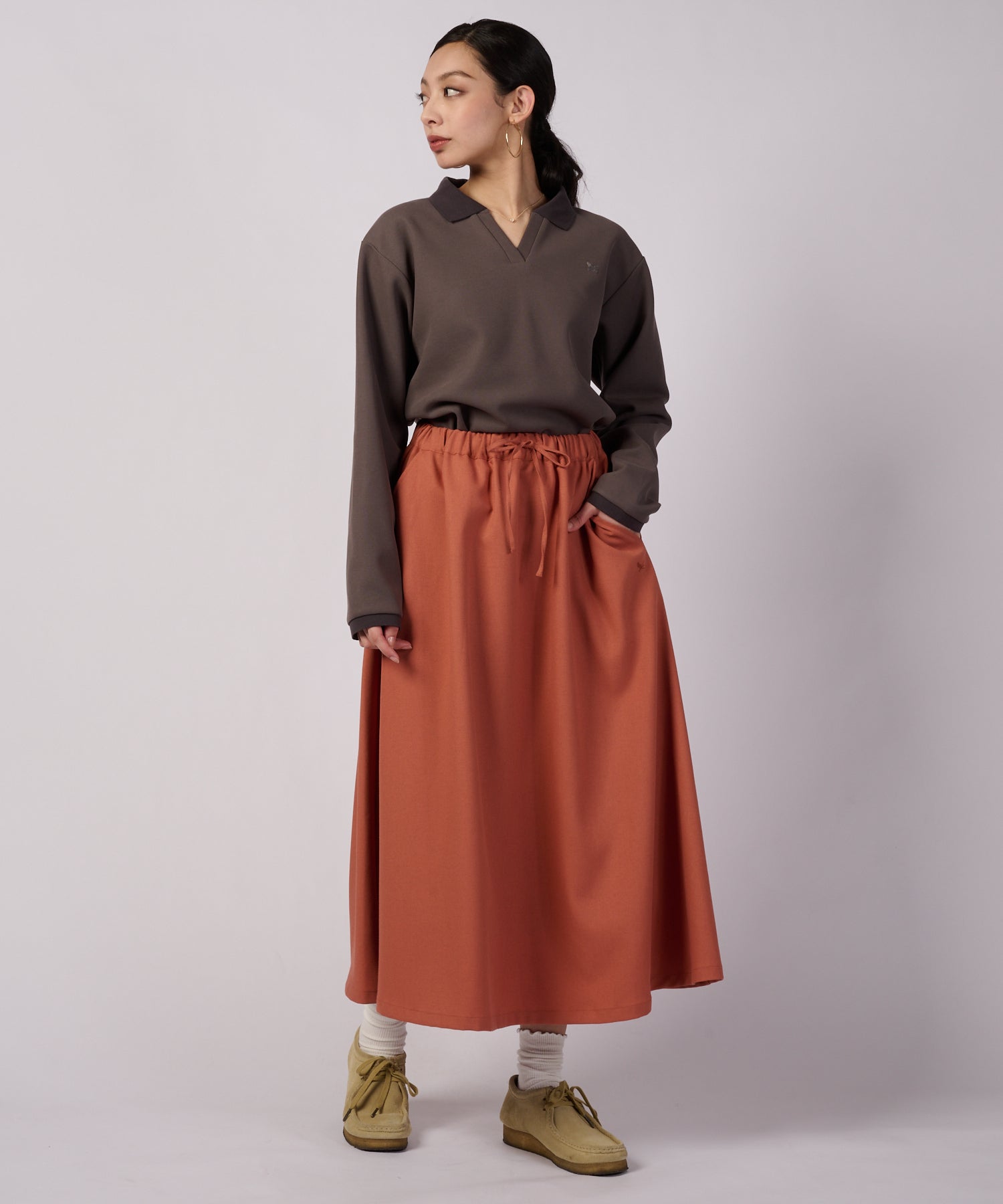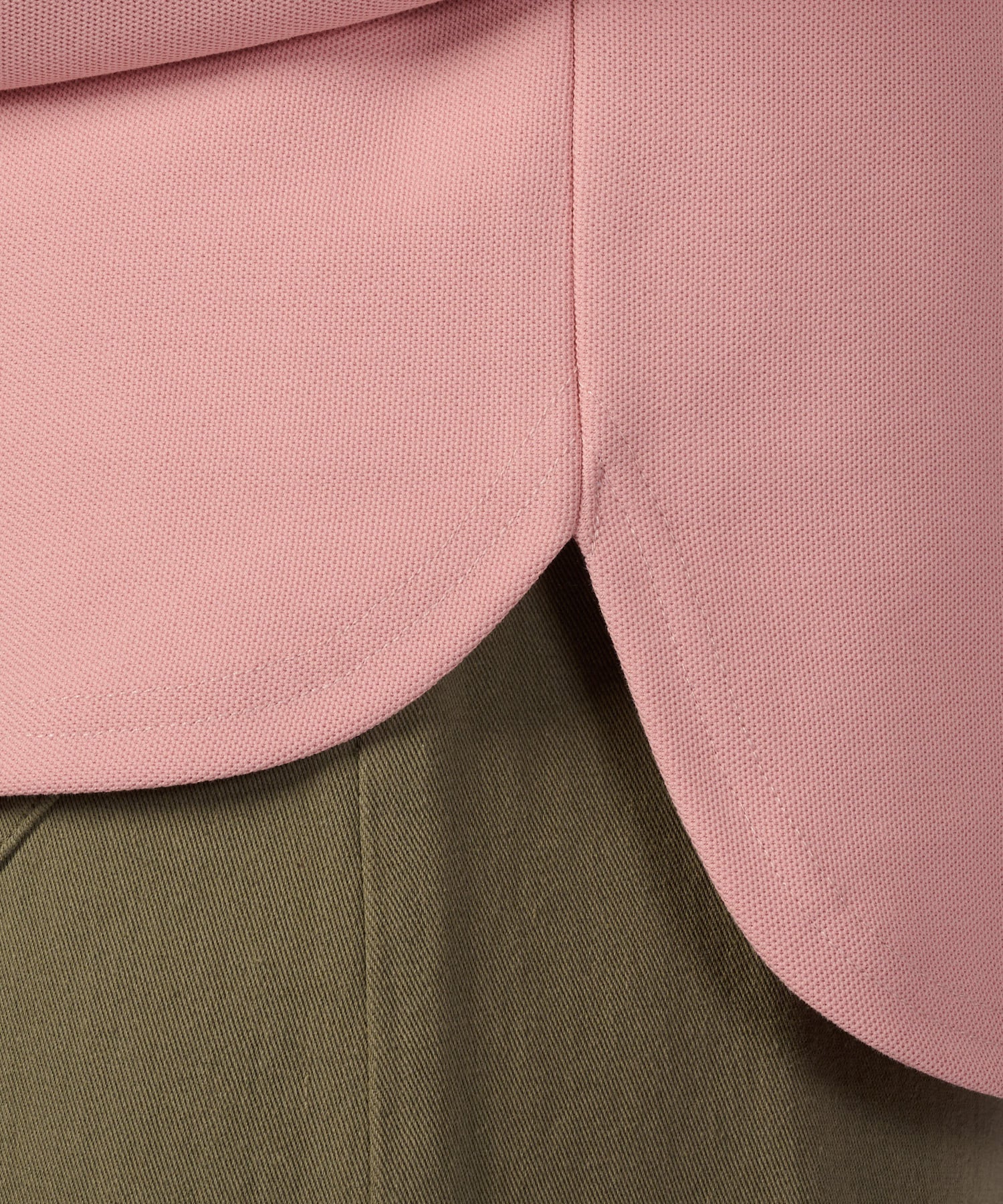 スキッパーで少し開けたフロントと適度のサイズ感の衿が首周りをすっきりと見せてくれます。