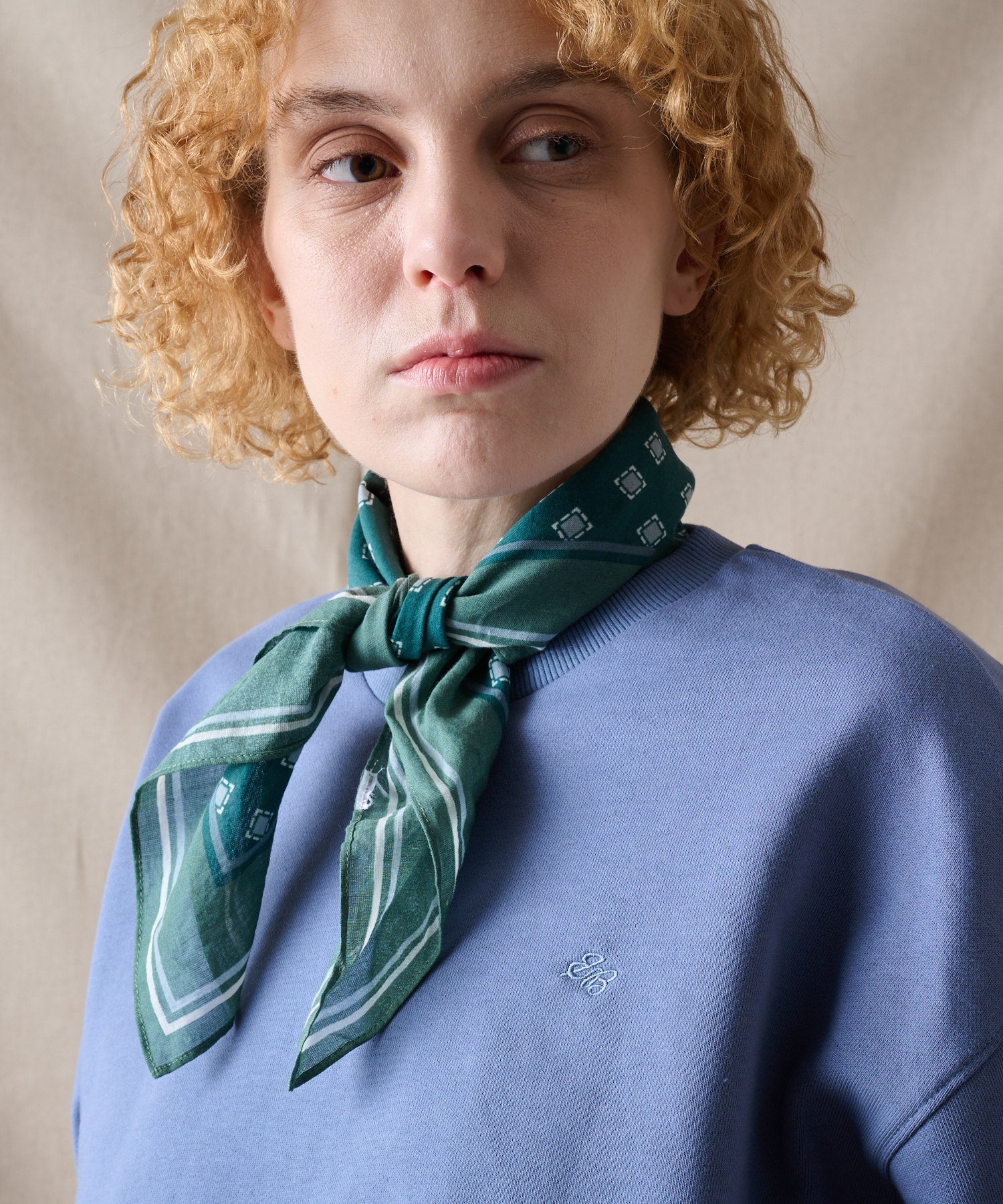 オーバーシルエットのトップスを、裾と袖口をゴムで絞りまとめることで、ラウンドしたフェミニンな印象を作り上げています。