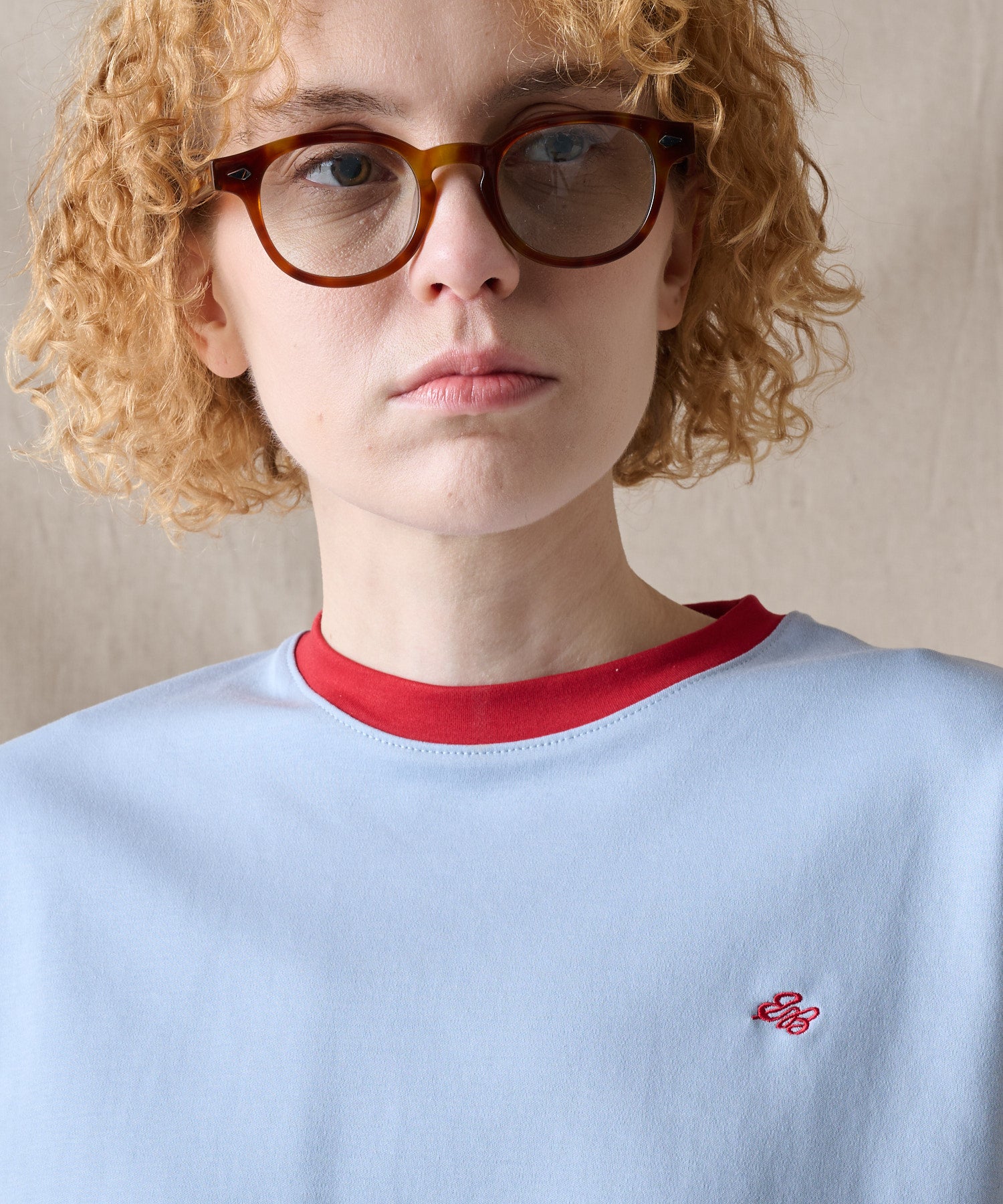 配色を切り替えたリブが印象的で一枚着用しても主役級の存在感のあるトップスです。