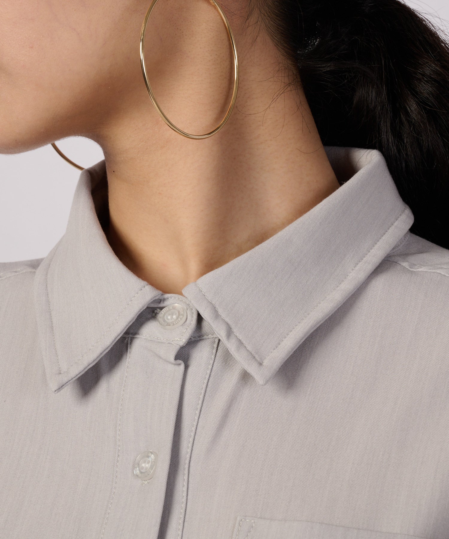 デニムライクな生地を採用したシャツワンピース。