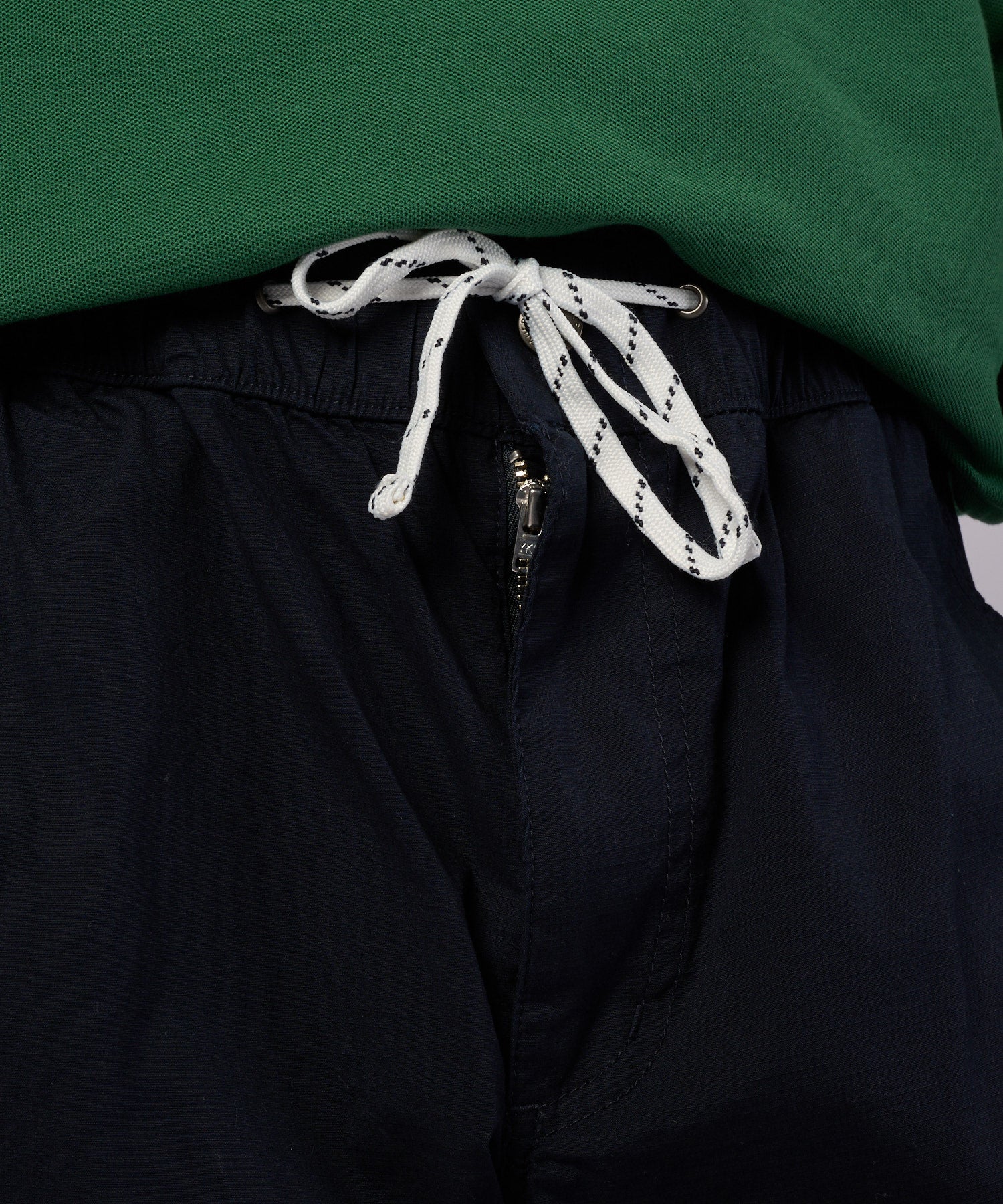 ウエストは平ゴム仕様でゆとりを持って着用でき、かつドローコードを装備し、自在に調整可能です。