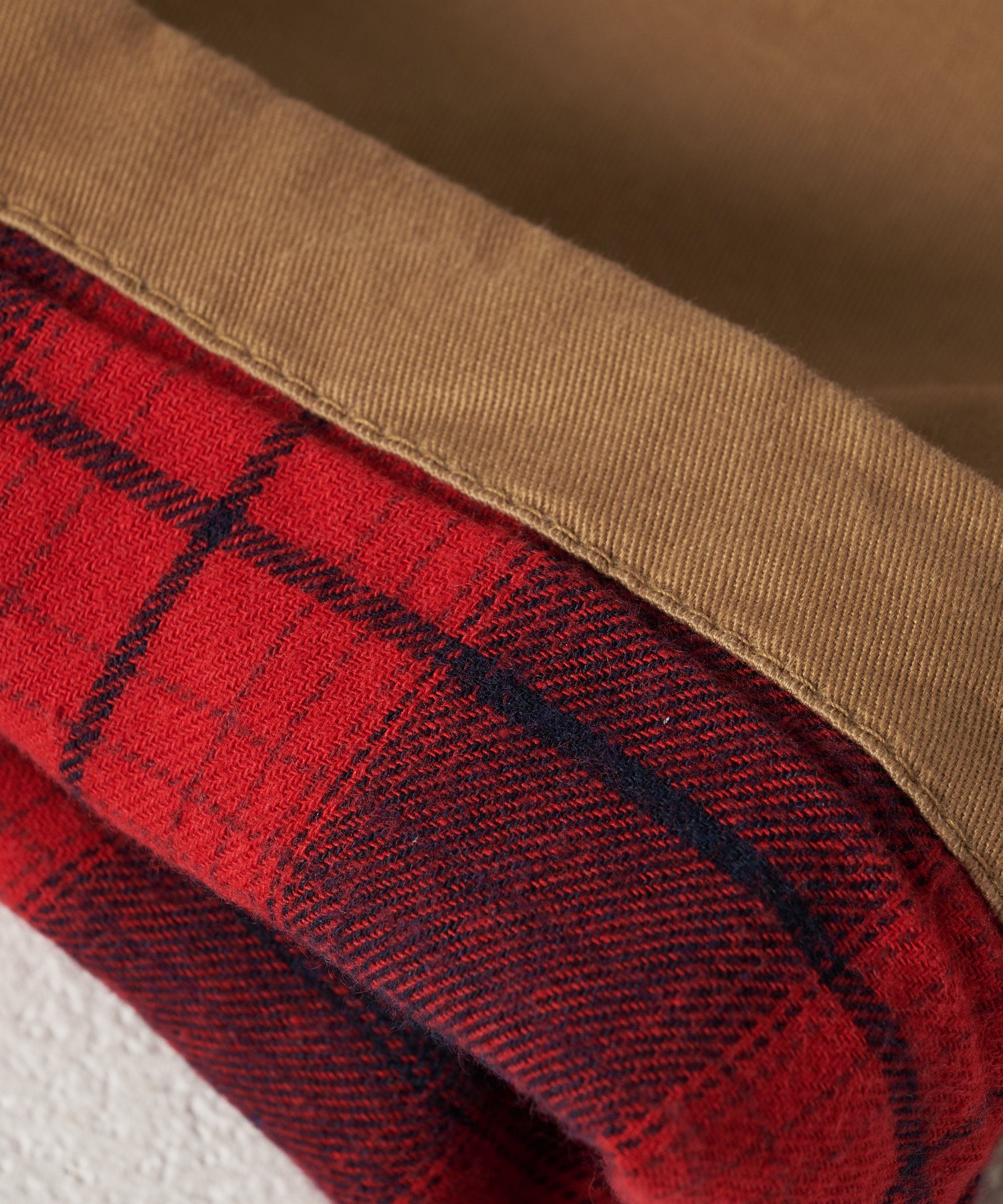 厚すぎず薄すぎないツイル生地に暖かなネルチェックの裏地を採用。