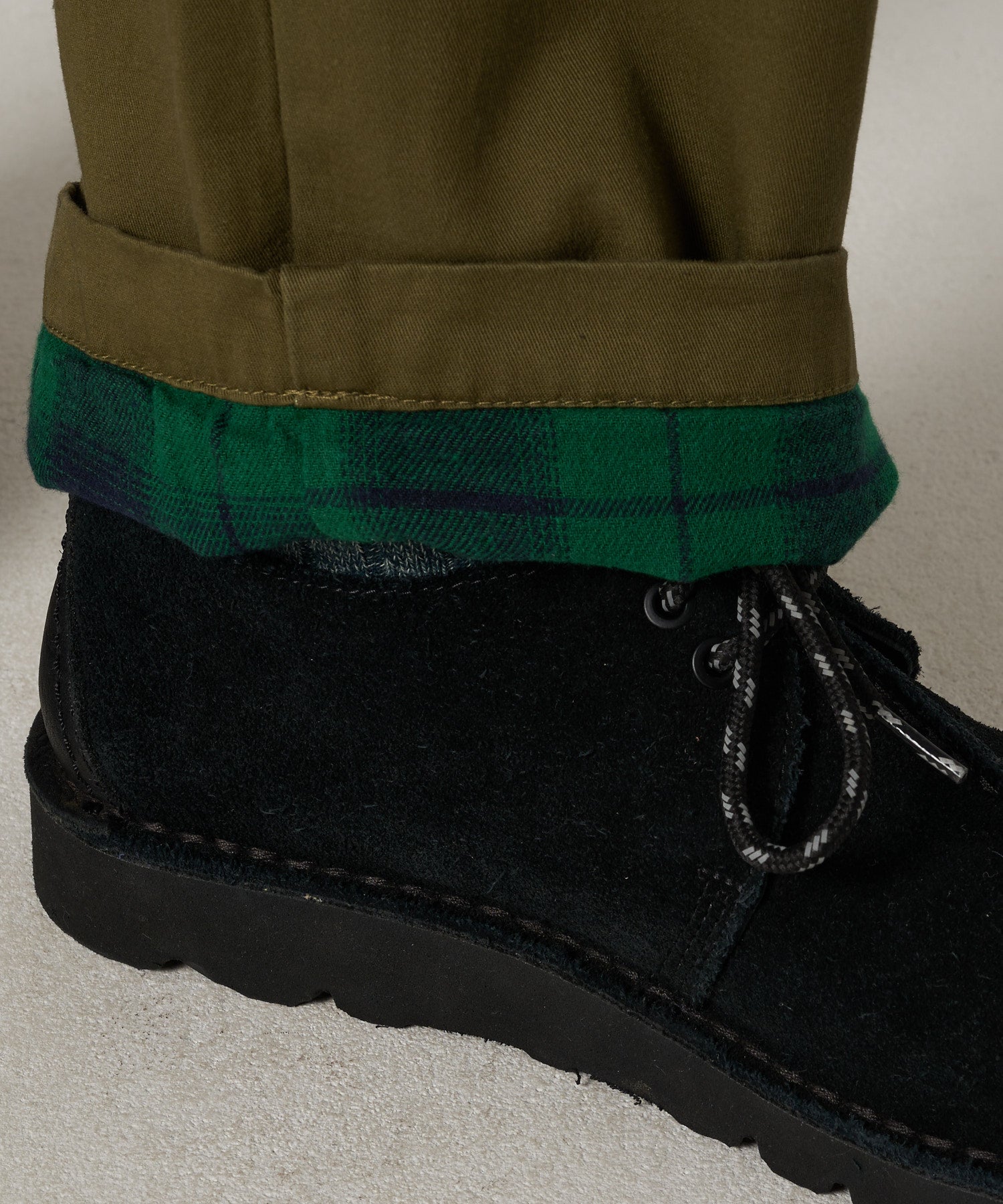上質なツイル生地にネルチェックの裏地を使用したオリジナルカーキパンツ。