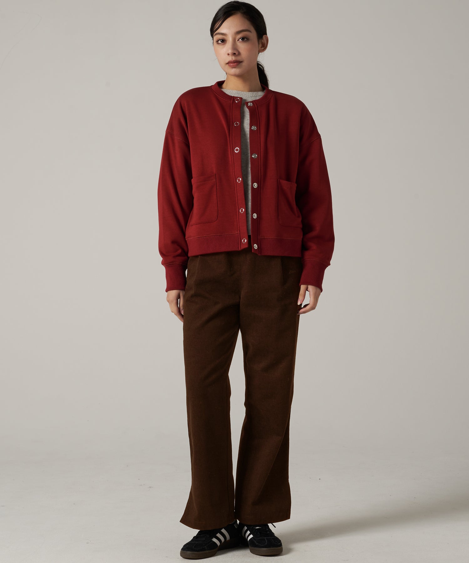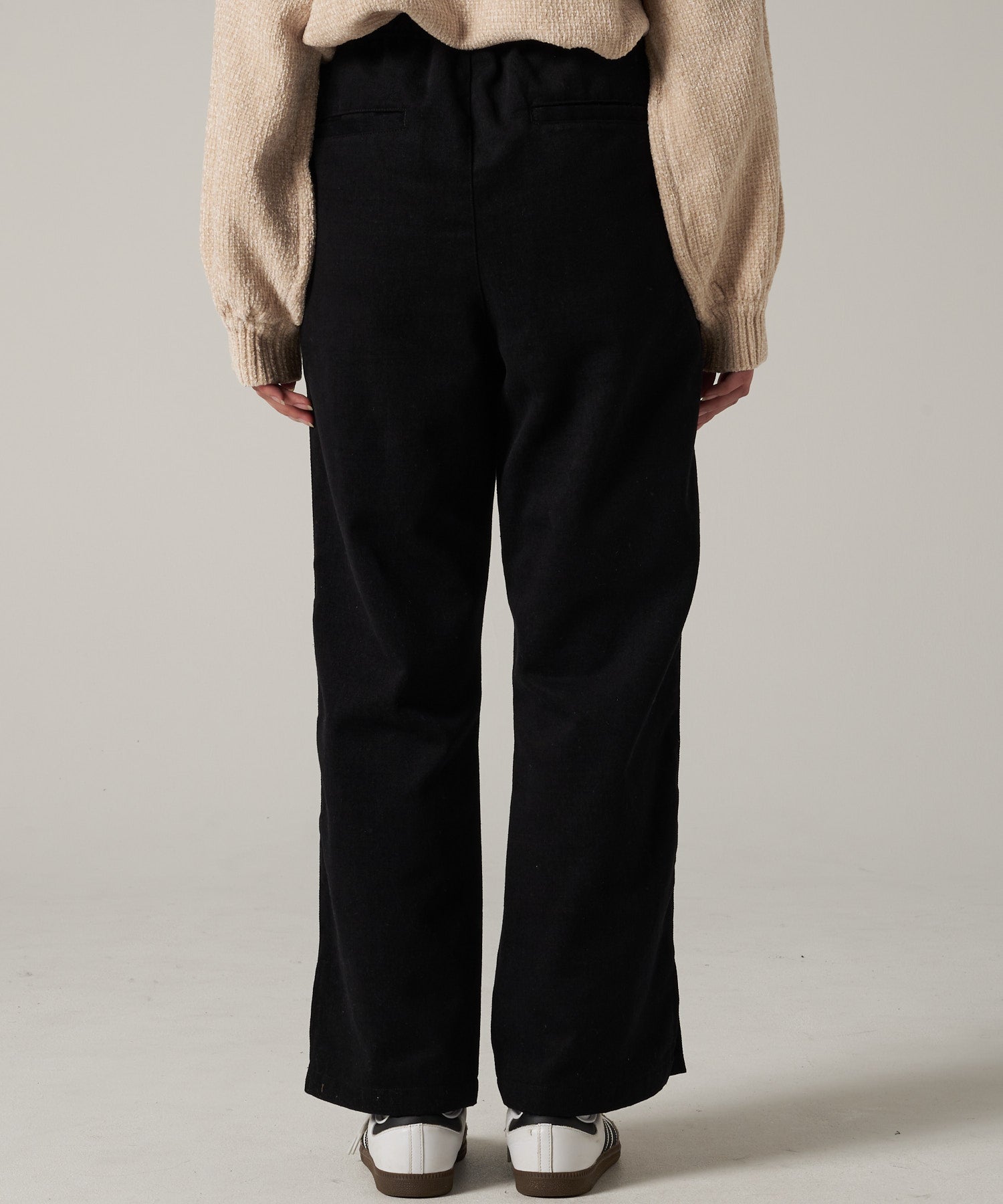 ニットやシャツなど、どんなトップスにも合せやすいシンプルなボトムスです。