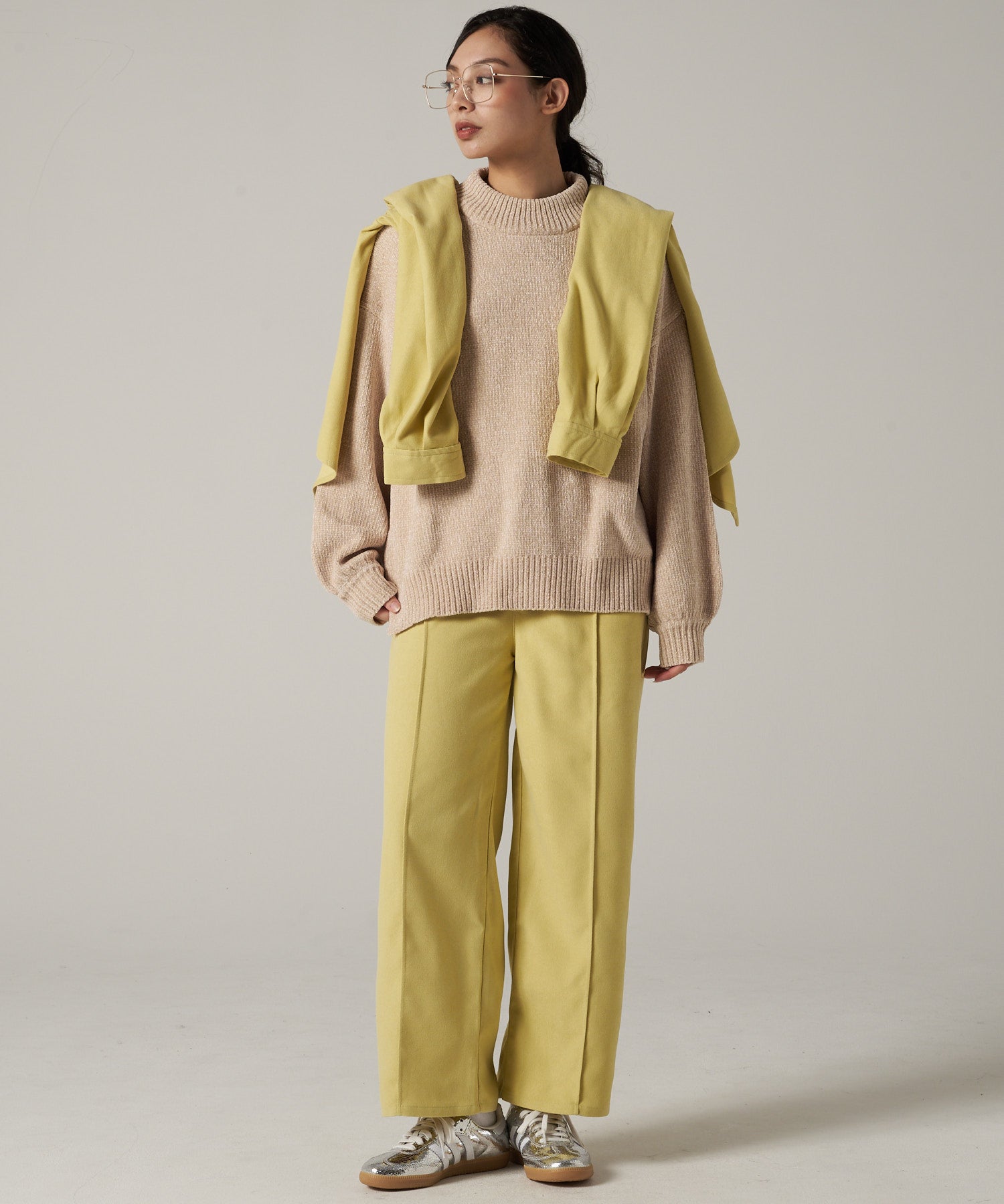 センタープレス風のステッチですっきり見えするストレートパンツ。