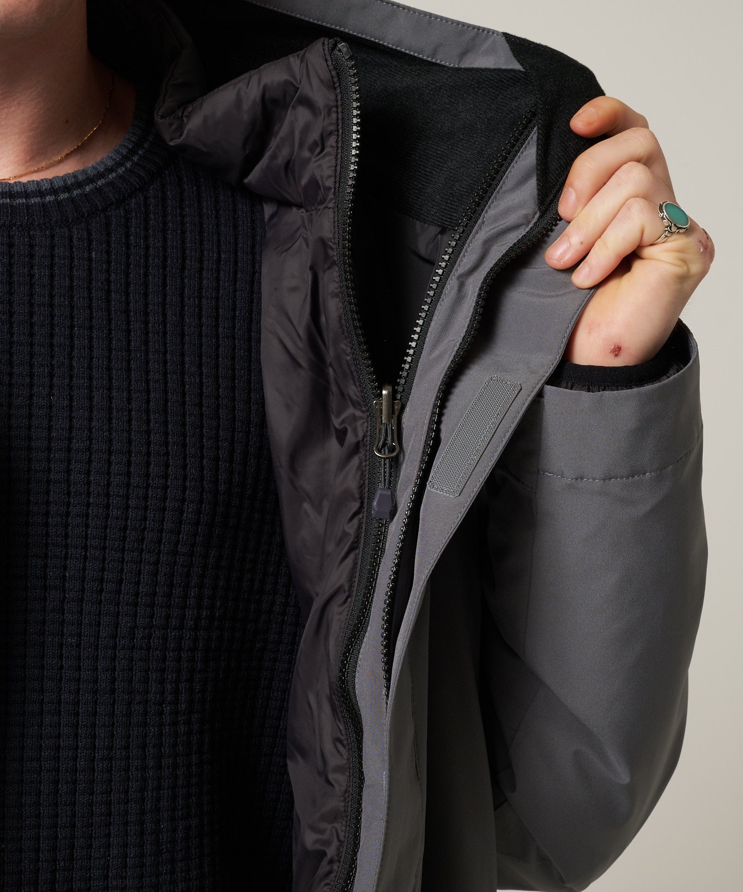 3通りの着こなしで、さまざまな天候やシーンに対応するオールマイティなアイテムです。