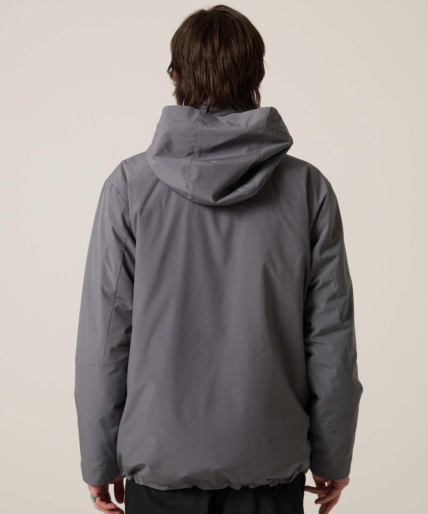 機能的かつシンプルなフード付きアウターはどんなスタイルにも合わせやすく一枚あると重宝します。