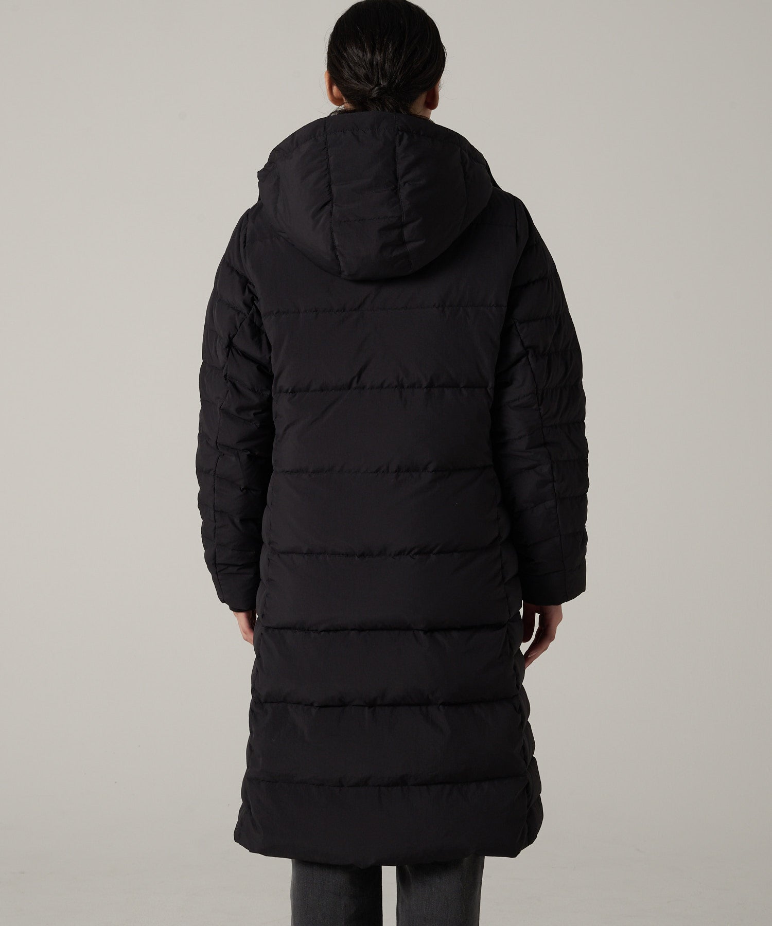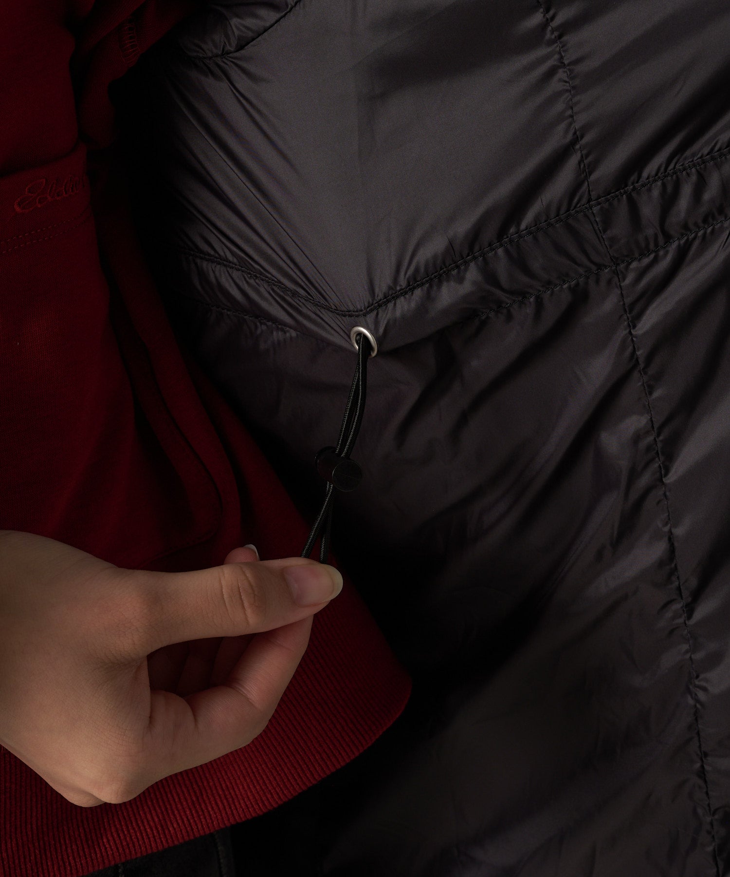 女性らしい立体感を演出し、正面・背面・脇部分でキルトの切替段数を変化させ視覚的にウエストを細く見せることで、ボリューム感のあるアウターでもボディラインをスッキリとした印象に見せてくれます。