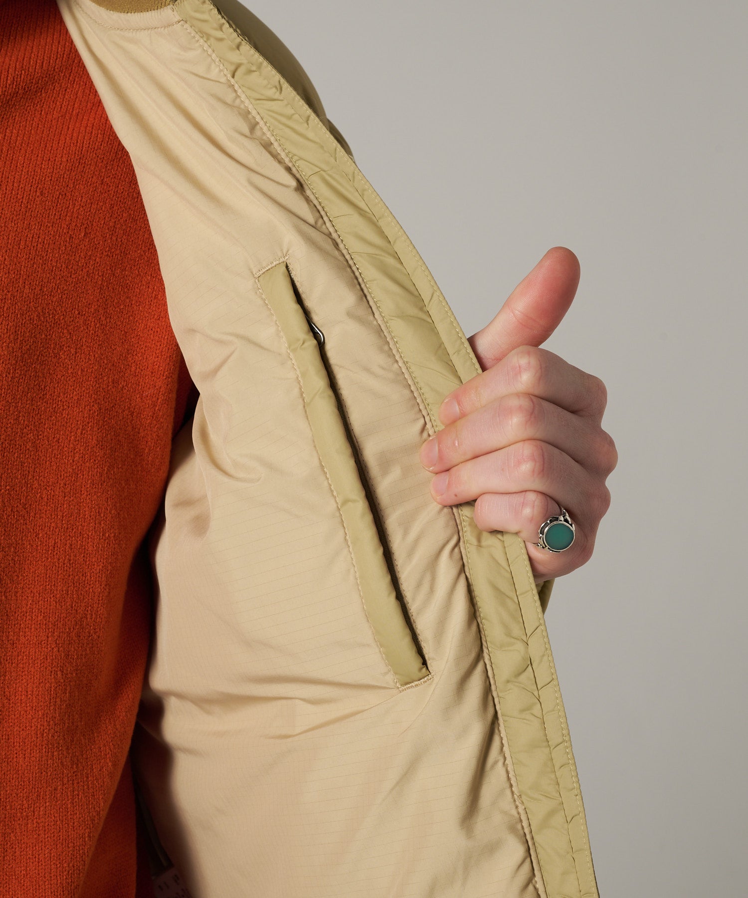 中わたには、700フィルパワーの優れた保温性と軽量性を併せ持った高品質なダックダウン90/10を採用。