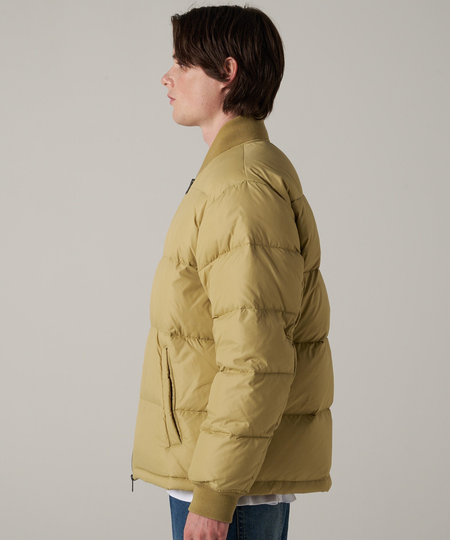 クラシックなムードを醸し出すリブデザインのダウンジャケット。