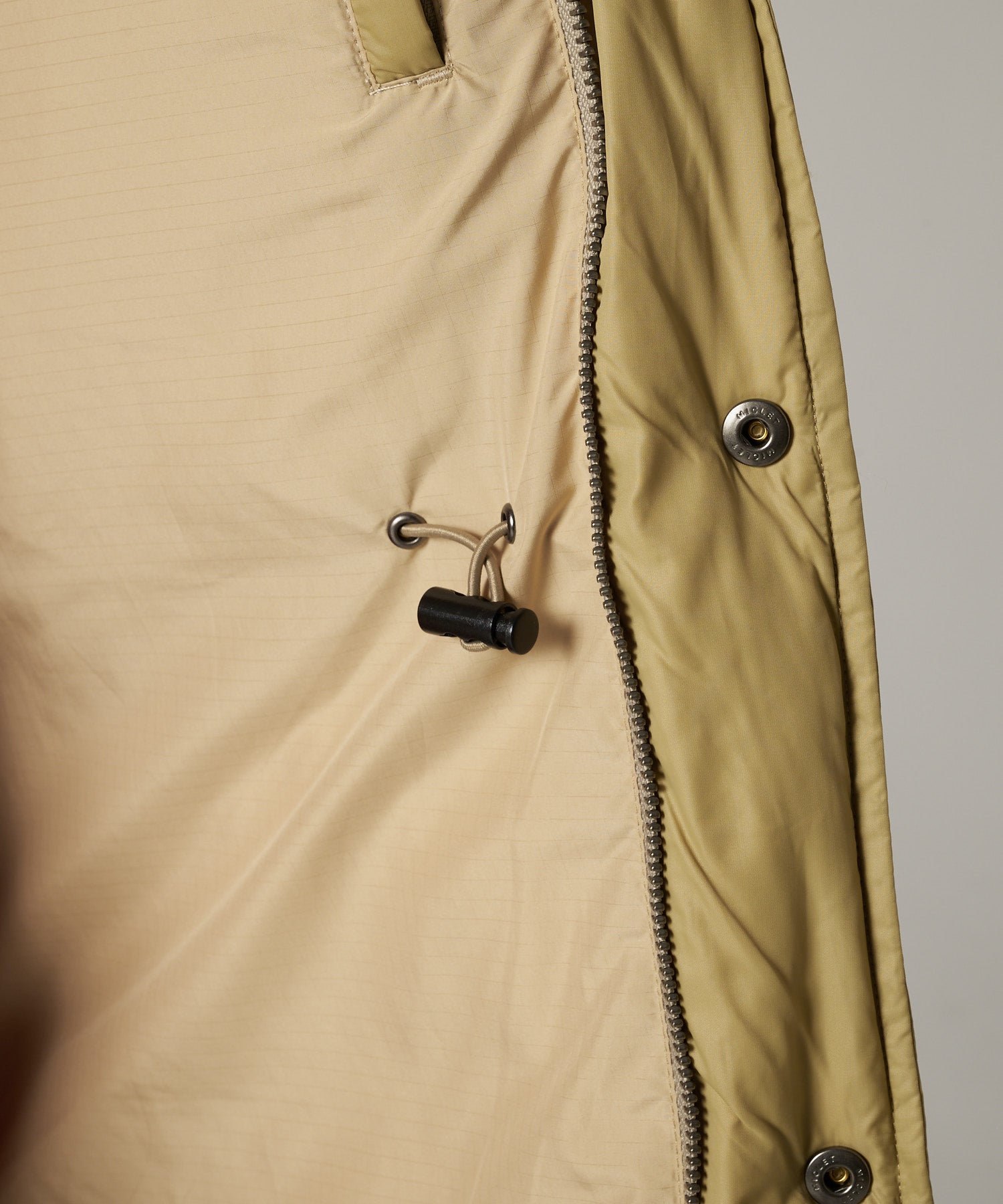 フードとウエストはエラスティックスピンドル仕様で、防寒性を高めたり、シルエットの変化を楽しめます。