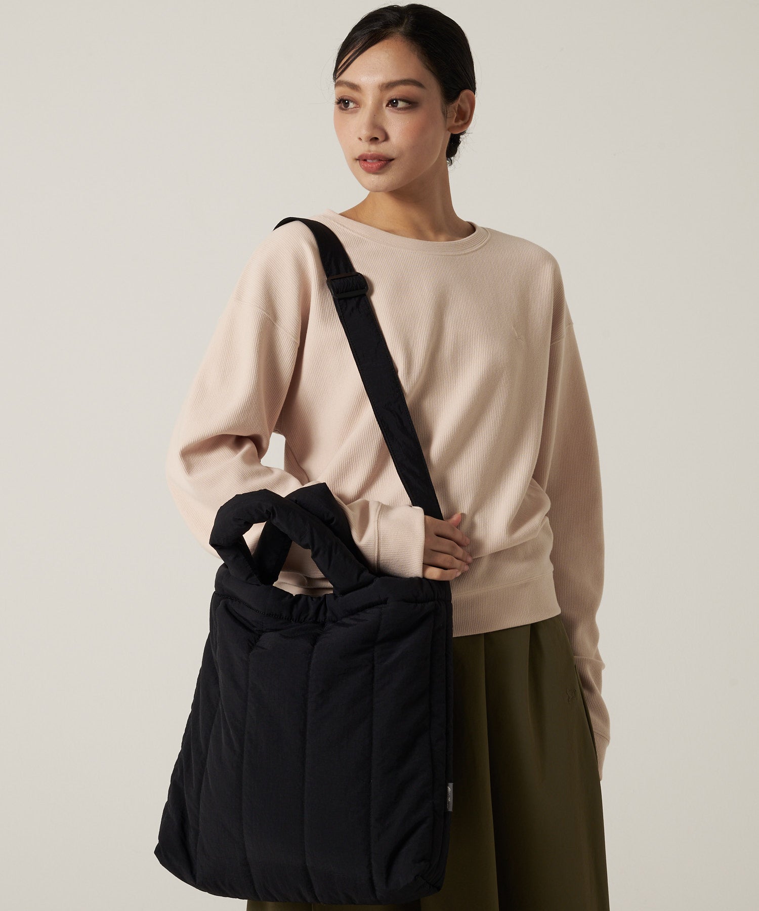 ふんわりとした中わた入りで、見た目も手触りもあたたかみのあるトートバッグ。
