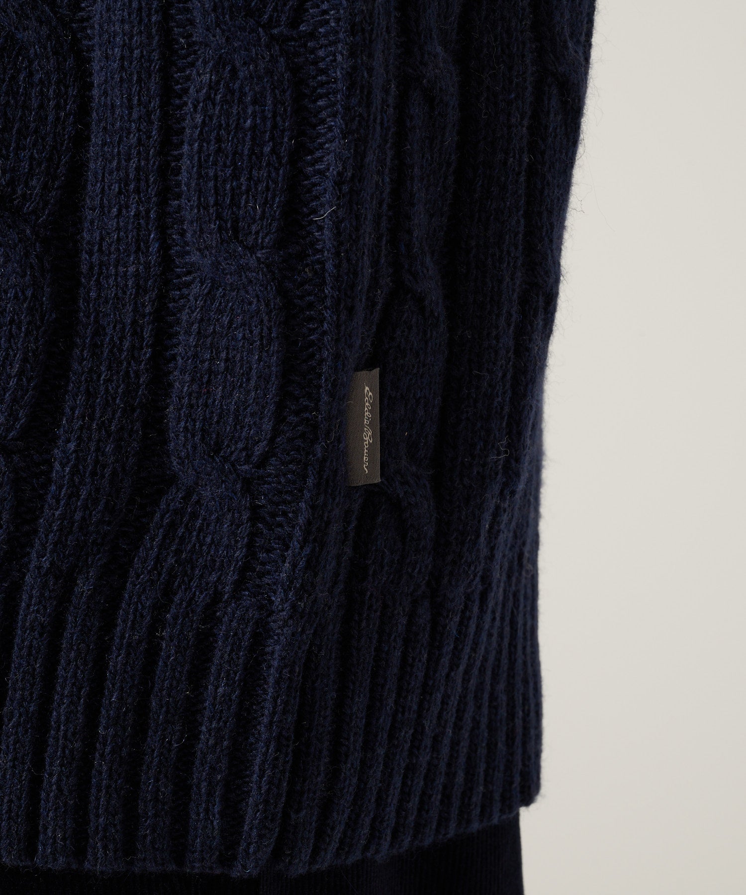 立体的な編み方で防寒性を高めており、トレンドに左右されないケーブル編み。