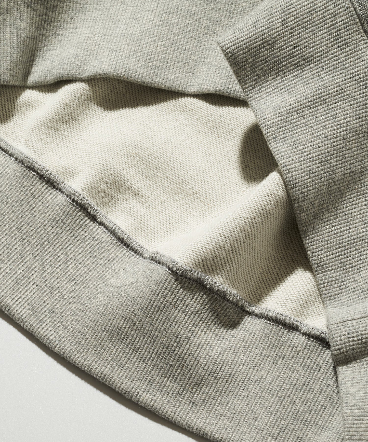 肉厚でしっかりとした生地感、高い保温性、型崩れのしにくさが特徴のヘビーウエイトのコットン100%裏毛素材を使用。