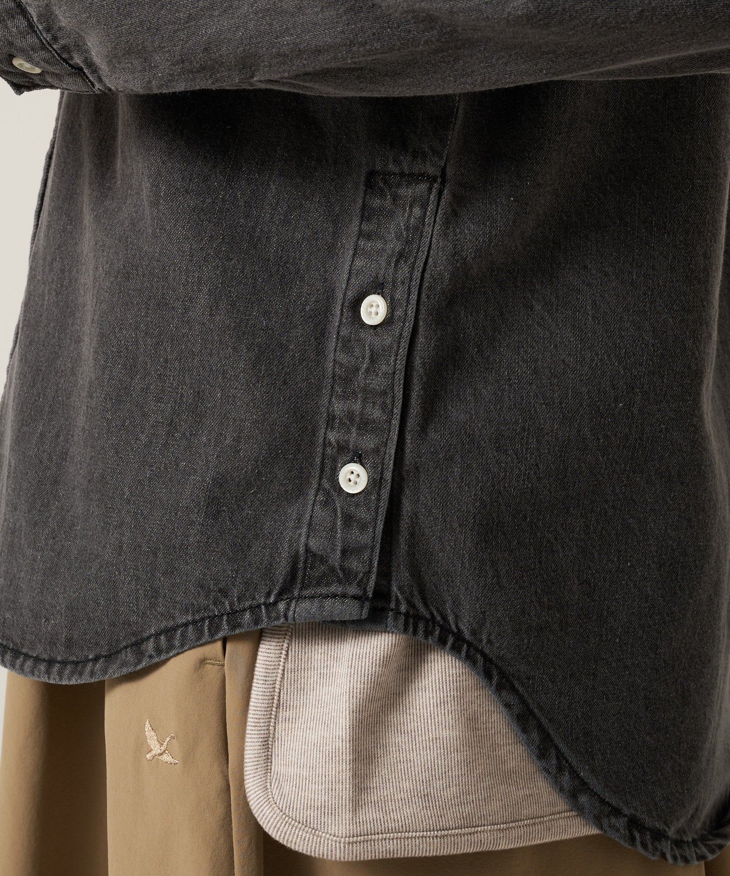 ウォッシュ加工でデニム独特のヴィンテージ感を表現したデニムシャツ。